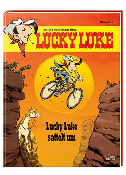 Auf einem seiner Ausflüge durch die Prärie landet Lucky Luke ganz unvermittelt in einem Sattel, der ihm fremder nicht sein könnte: im Sattel eines Drahtesels nämlich - in dem er dann gleich auch noch den nordamerikanischen Kontinent durchqueren muss. Klar, dass das seinem eigentlichen Sattelträger Jolly Jumper gar nicht in den Kram passt. Mit Lucky Luke sattelt um widerfährt dem Berliner Comiczeichner Mawil die große Ehre, sich als erster deutscher Künstler der Comic-Ikone Lucky Luke annehmen zu dürfen. Und dieser Ehre wird er mit dieser temporeichen und vor Gags strotzenden Hommage mehr als gerecht.